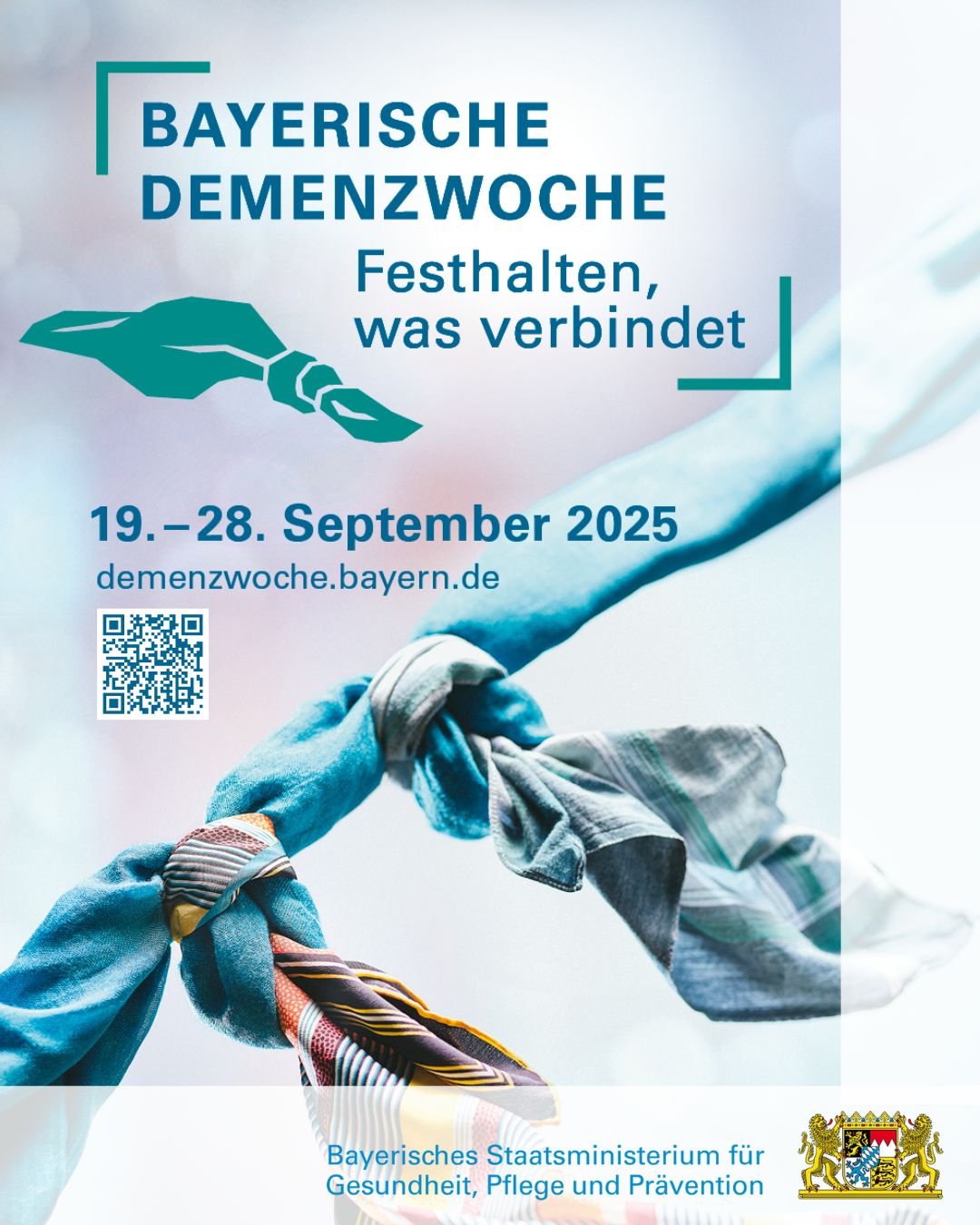 Bereits zum sechsten Mal findet vom 19. bis 28. September 2025 die Bayerische Demenzwoche statt. In ganz Bayern werden über 1400 Veranstaltungen angeboten – sowohl vor Ort als auch online. Ziel ist es, Wissen über das Krankheitsbild Demenz zu vermitteln, für die Belange von Menschen mit Demenz und ihren Angehörigen zu sensibilisieren und ihre gesellschaftliche Teilhabe zu stärken.