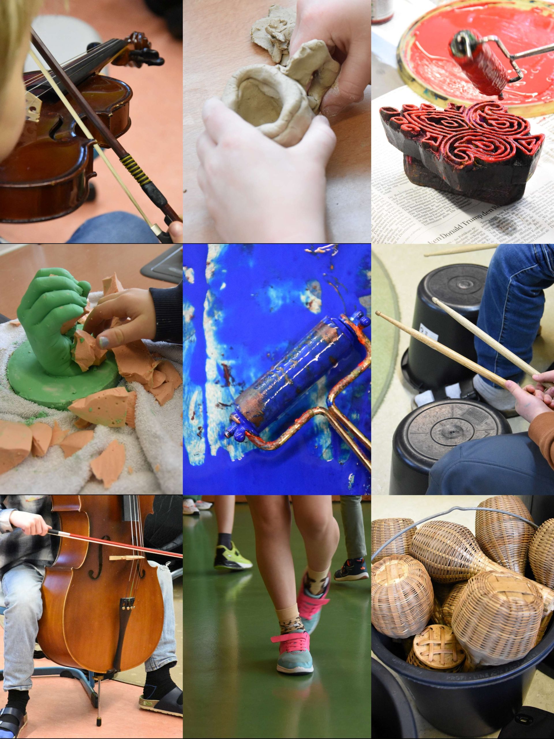 Der Tag der Rezertifizierung war so abwechslungsreich wie das Programm des KS:BAM selbst. Die Kinder konnten gemeinsam mit den Kulturpartnerinnen und -partnern Stephan Barnikel, Erik von Brandt, Yessica Höpfl, Patrik Lumma und Roma Pohl auf afrikanischen Instrumenten musizieren. Sie konnten eigene Handabdrücke mit Alginat und Gips herstellen, mit Ton experimentieren sowie ihr Selbstvertrauen durch freies Tanzen stärken. Darüber hinaus konnten sie die Familie der Streichinstrumente von der Violine bis zum Kontrabass kennenlernen sowie mit indischen Holzmodeln farbenfroh drucken. Der gemeinsam mit Sebastian Schönmoser und Pingpong-Workshops produzierte neue Schulfilm zeigte weitere Einblicke in die Projektarbeit und das kulturelle Leben. Insgesamt setzt die Grundschule Königsfeld einen Schwerpunkt auf jahrgangsübergreifendes Arbeiten und die kreative Aktivierung der Schülerinnen und Schüler. Im Schulleben hat Kulturelle Bildung einen nicht mehr wegzudenkenden Stellenwert. Dieser soll auch in herausfordernden Zeiten Bestand haben.