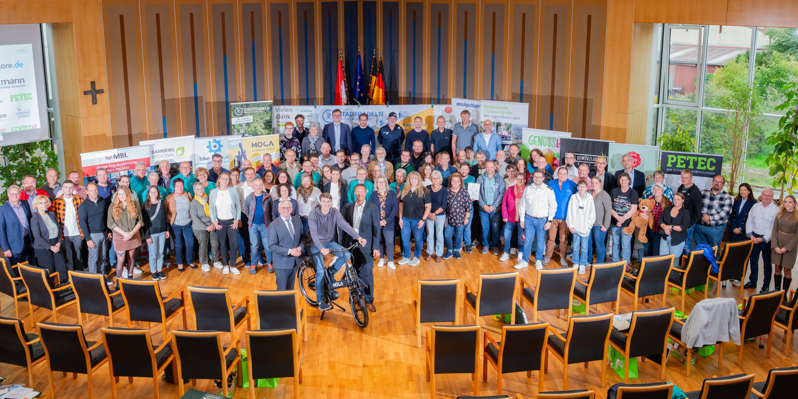 Zum großen Erfolg der gesamten Aktion haben nicht nur die unzähligen Radlerinnen und Radler von jung bis alt beigetragen. Auch die vielen regionalen Partner trugen dazu bei, da sie durch ihre großzügige Unterstützung tolle Preise ermöglichten. Landrat Kalb dankte in diesem Zusammenhang namentlich den Firmen Bike-Café Messingschlager, bike-store.de, Musikhaus Thomann, Maschinenbau Leicht GmbH, und Gewürzhelden by Kirchner. Auch dankte er dem Gasthof Schiller, Porzner Steine & Erden, Franz Veit GmbH, easy Apotheke Strullendorf, Dr. Pfleger, Teddy-Hermann, B.O.C., Frankenstolz, Zweirad Stretz, Petec, Lohmann-Koester sowie der Klima-Allianz. Auch die Initiative Genusslandschaft Bamberg und Regionalwerke Bamberg wurden erwähnt.
