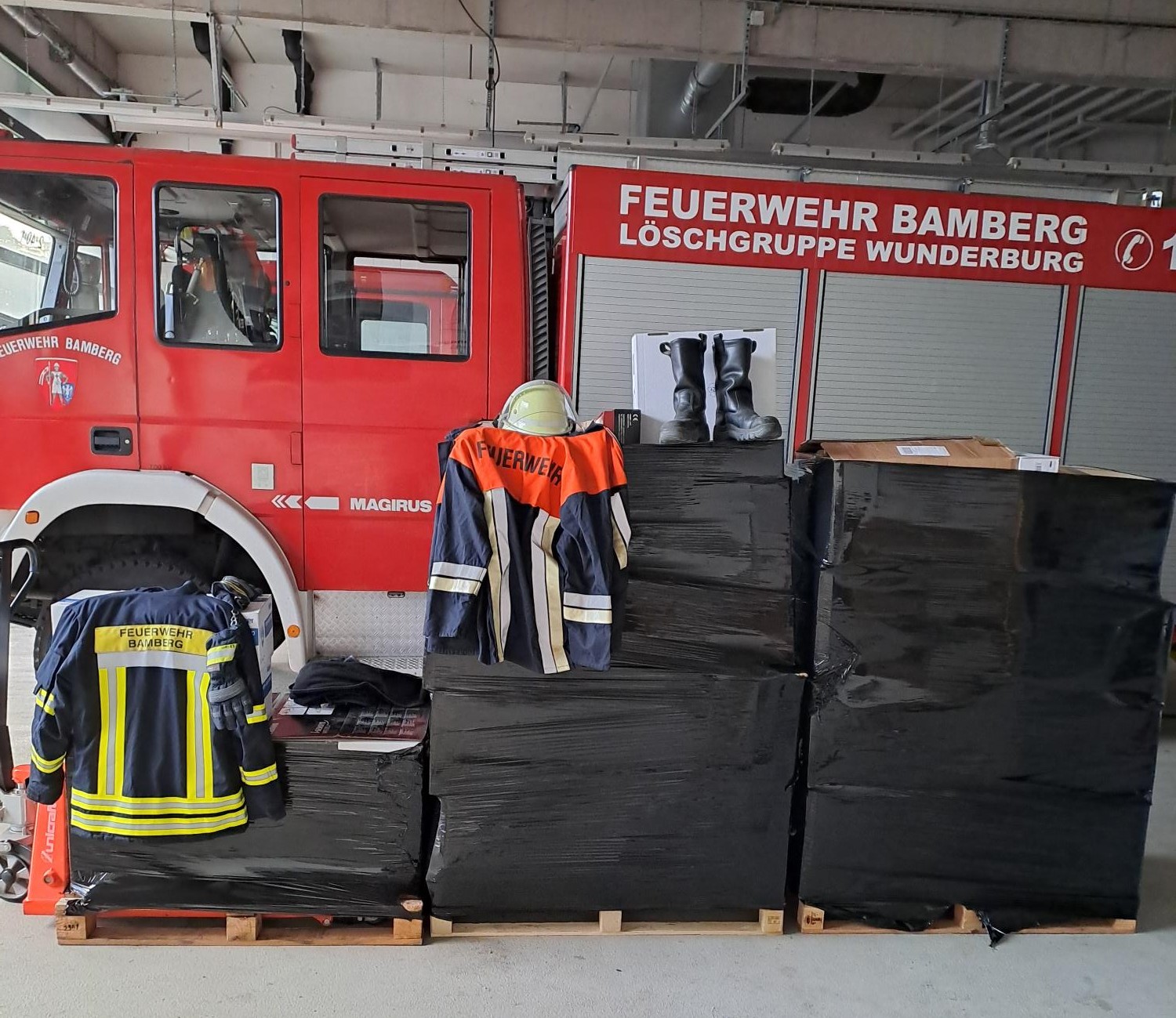Stadtbrandrat Florian Kaiser von der Freiwilligen Feuerwehr Bamberg stellte daraufhin umgehend eine Materialliste zusammen. Feuerwehrkleidung, Feuerwehrhelme, Einsatzjacken und Brandschutzhandschuhe konnte die Feuerwehr kurzfristig abgeben. Die Gegenstände wurden von einer Spedition verladen und auf den Weg Richtung Osten gebracht. Sie sind inzwischen wohlbehalten in Mukatschewo angekommen.